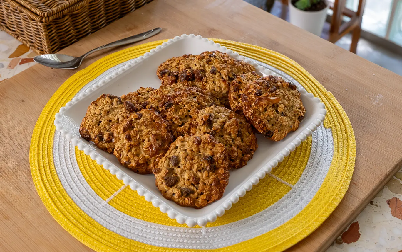 Rafine şeker içermeyen, yulafla hazırlanan ve kuru meyvelerin doğal tatlılığıyla zenginleşen bu kurabiyeler; çay-kahve eşlikçisi, spor öncesi enerji kaynağı veya çocuklar için sağlıklı bir ara öğündür.