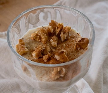 - Hazırladığınız karışımı kaseye alın, üzerine tarçın ve ceviz serpin.
